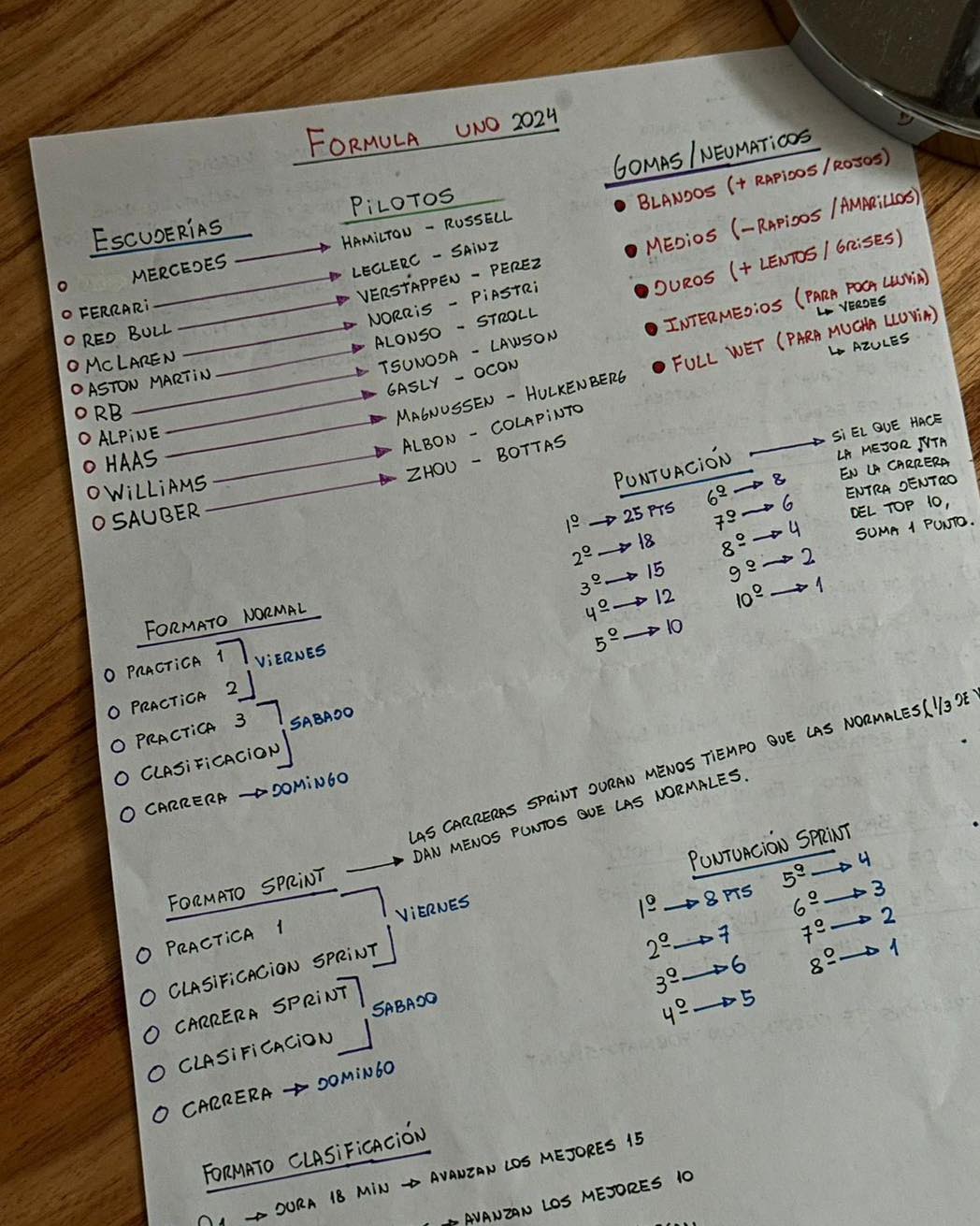 El esquema incluía elementos clave como estrategias de carrera, el funcionamiento de los pit stops y la importancia de los neumáticos, usando analogías claras y referencias cotidianas para hacer más comprensibles los detalles técnicos. La explicación fue tan efectiva que no solo ayudó a su novia a entender la F1, sino que también cautivó a miles de usuarios, quienes elogiaron la creatividad y dedicación del fan.